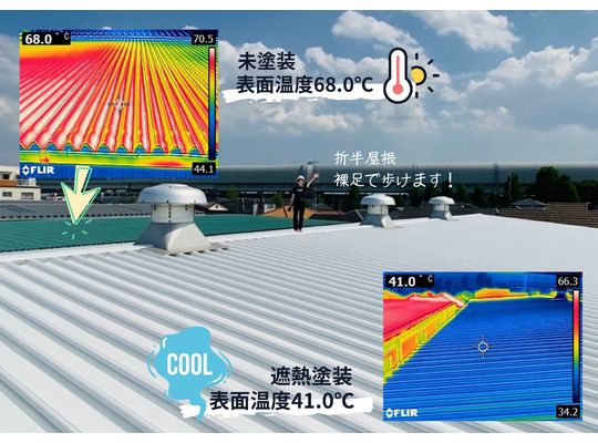 遮熱塗料の力、ここに証明📸~工場屋根の暑さ対...